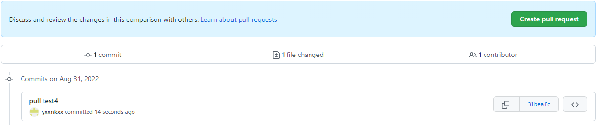 오른쪽 create pull request 누르면 pull request 생성됨