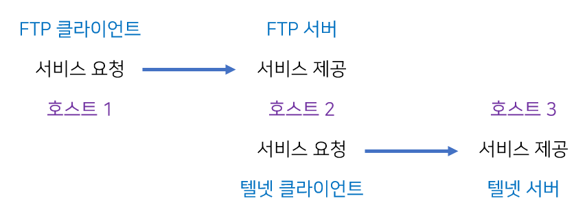 FTP 서비스 기준: 호스트 1=클라이언트, 호스트2=서버