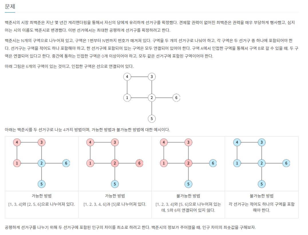 선거구를 두 개로 나누기 위해 부분집합을 활용한다.