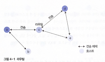라우팅 호스트가 송수신 호스트의 중간에 위치