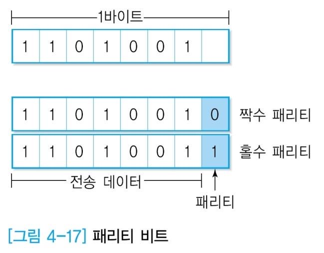 - 홀수 패리티 방식(Odd Parity): 1의 개수를 홀수로 만듦 - 수신 호스트도 1이 홀수 개인지 판단