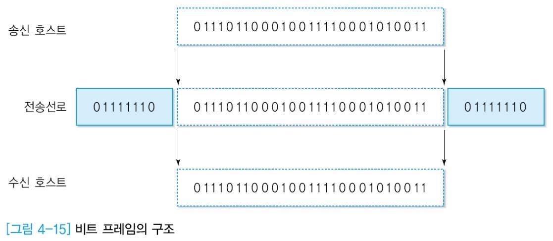 데이터를 전송하기 전에 프레임의 좌우에 플래그를 추가 → 수신 호스트는 이 플래그를 제거한 후 전송 데이터를 상위 계층에 전달