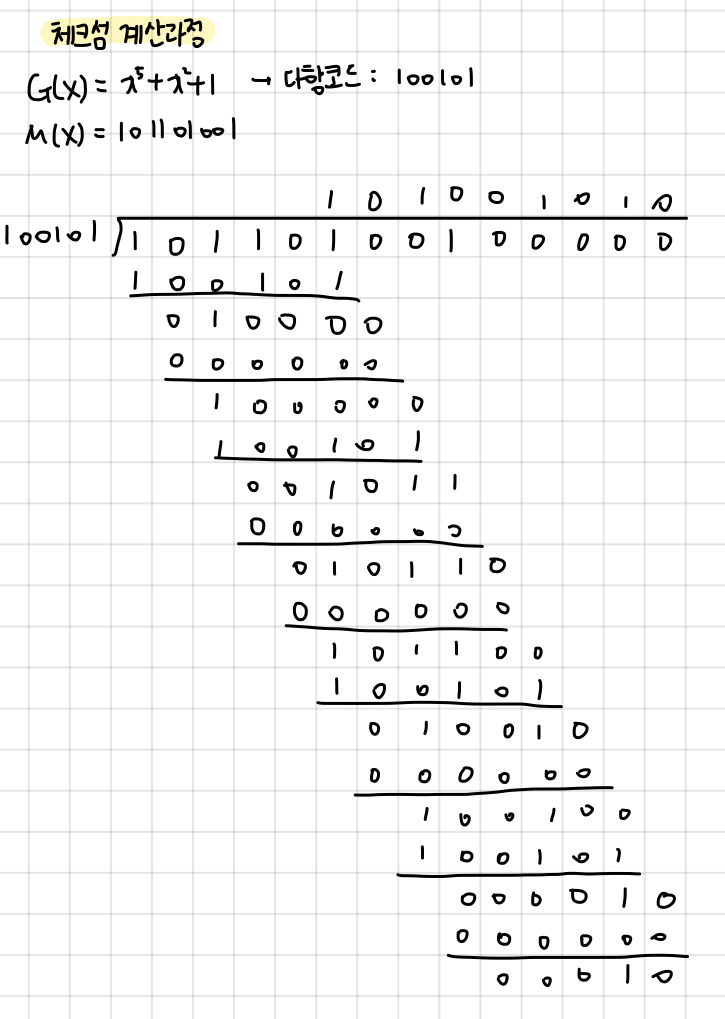 → 나머지가 0이면 전송 오류가 없음, 0이 아니면 오류가 발생