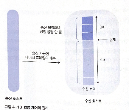 흐름 제어: 송신 호스트는 수신 호스트가 감당하 수 있을 정도의 전송 속도를 유지하며 데이터 프레임 전송
