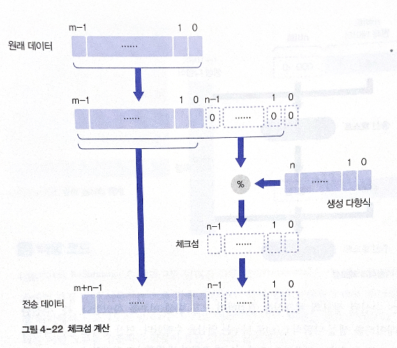 데이터가 m비트의 M(x)라면 데이터 전송 과정에서 n+1비트의 생성 다항식 G(x)를 사용해 오류 검출 코드인 n비트의 체크섬을 생성하여 오류 제어 기능 수행