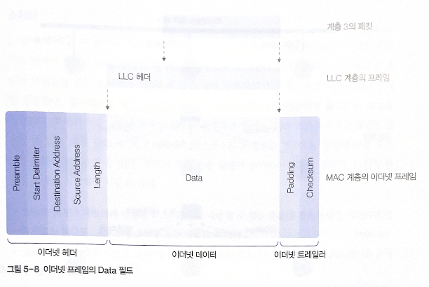 LLC 헤더와 LLC 데이터는 MAC 프레임의 Data 필드에 기록
