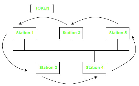 IEEE 802.5 토큰 링: 점대점 연결 호스트가 순환 구조 형태로 LAN 구성