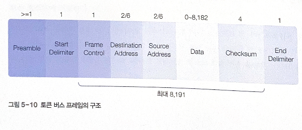 토큰 링 프레임: 데이터 프레임 + 토큰 프레임