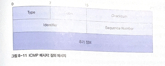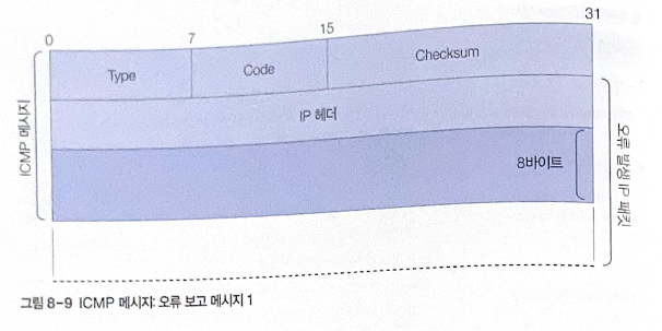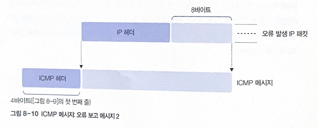 오류 발생한 패킷의 ip 헤더 + 추가적인 8바이트 정보가 메시지로 전달