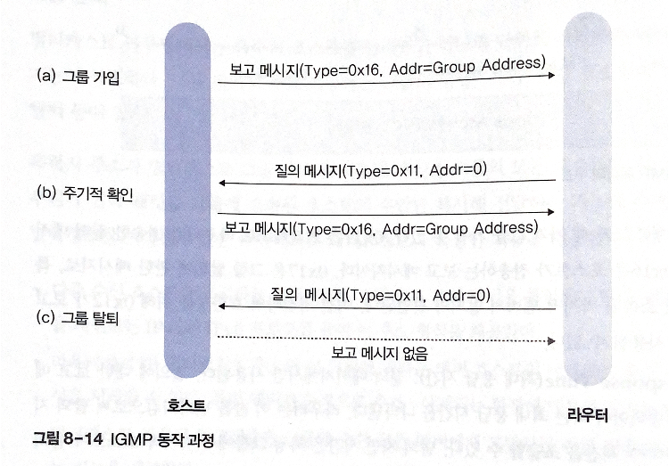 IGMP(Internet Group Management Protocol): 임의의 호스트가 멀티캐스트 주소로 정의된 멀티 캐스트 그룹에 가입하거나 탈퇴할 때 사용하는 프로토콜