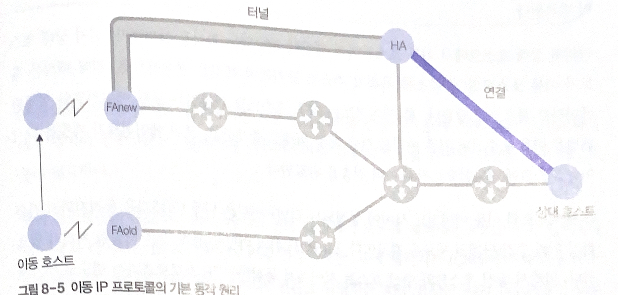 이 주소는 이동 호스트의 홈 에이전트(HA)에 등록 → FAnew와 HA 사이에 터널 형성