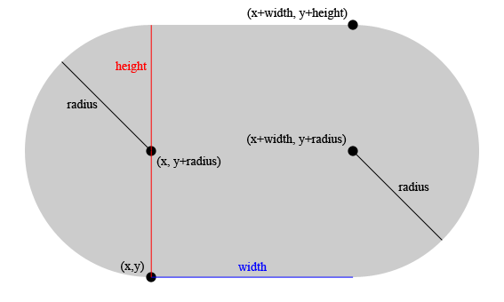 하키 링크는 (X, Y)가 가장 왼쪽 아래 모서리인 W * H 크기의 직사각형과, 반지름이 H/2이면서 중심이 (X, Y+R), (X+W, Y+R)에 있는 두 개의 원으로 이루어져 있다. 아래 그림을 참고한다.